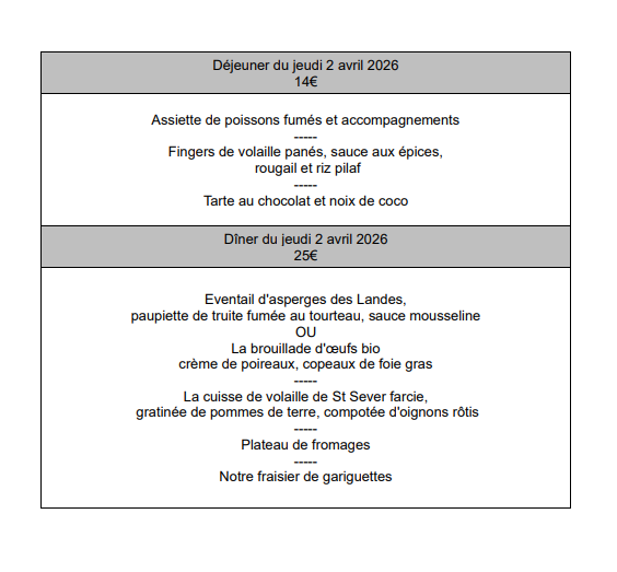 - Formule rapide (service assuré en une heure) : Entrée / plat / café ou plat / dessert / café : 10 €